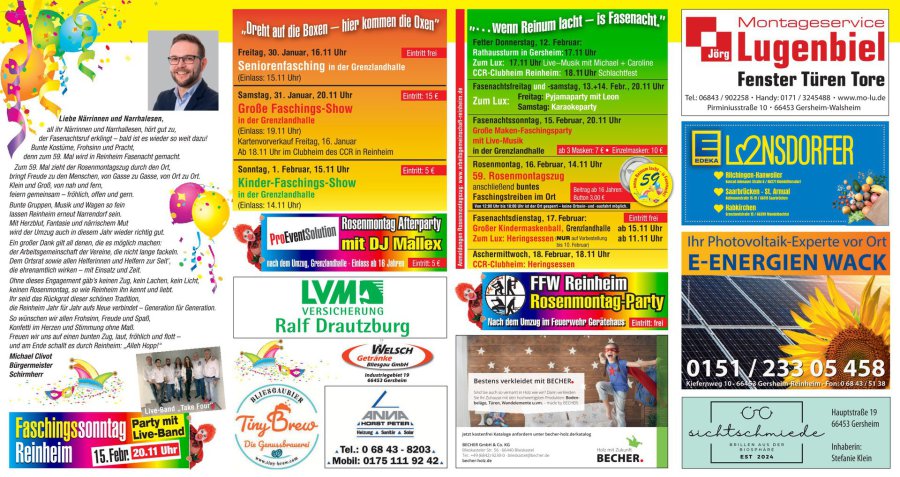 18:11 Uhr Live-Musik mit Michel im Gasthaus Zum LUX 18:11 Uhr Schlachtfest im CCR-Clubheim