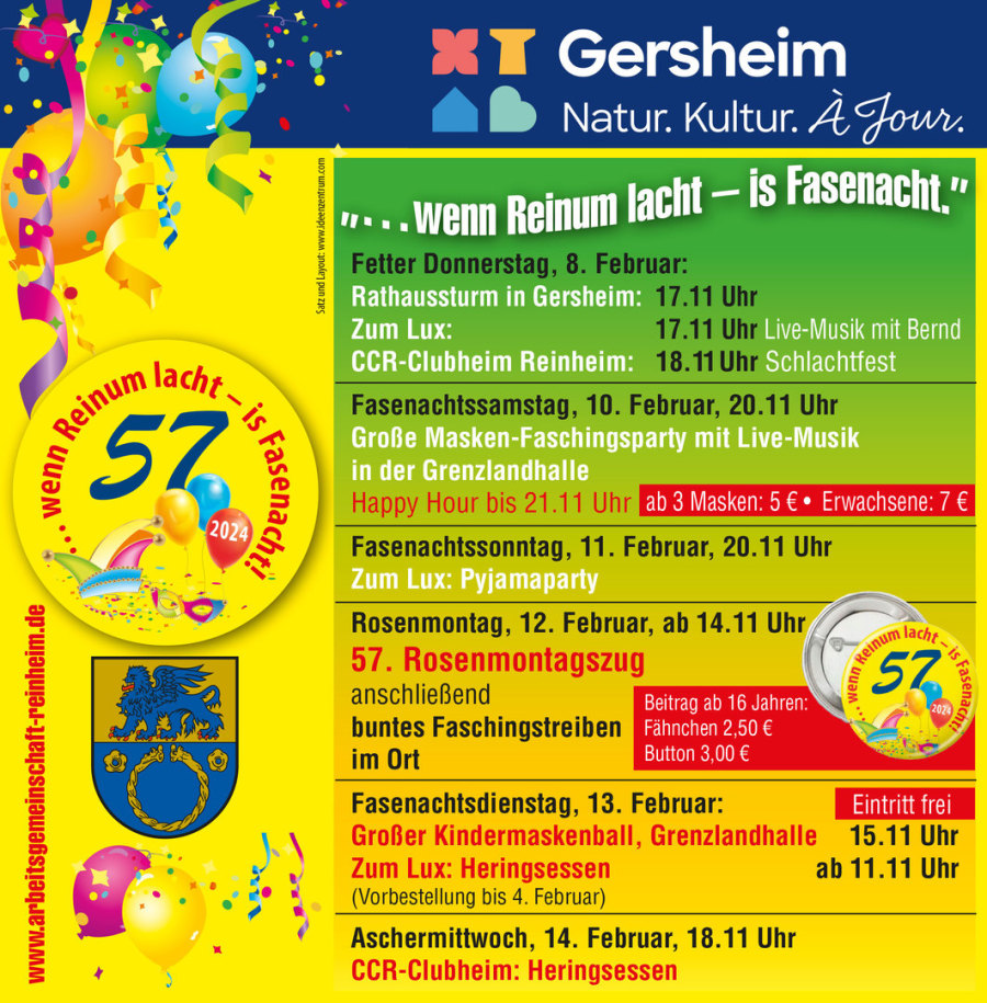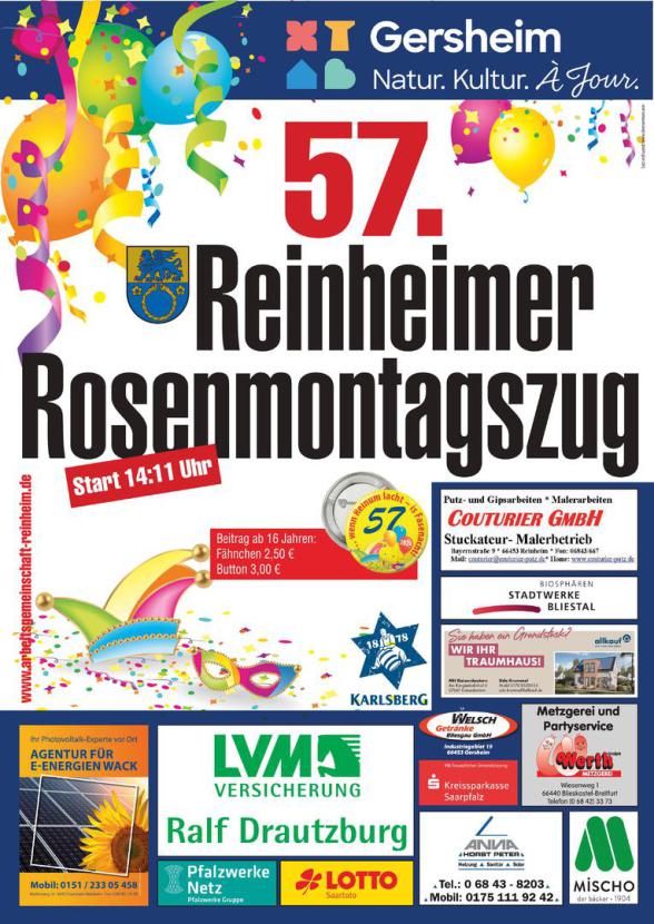 Die Aufstellung des Zugs erfolgt ab 12:15 Uhr an der Grundschule Reinheim.