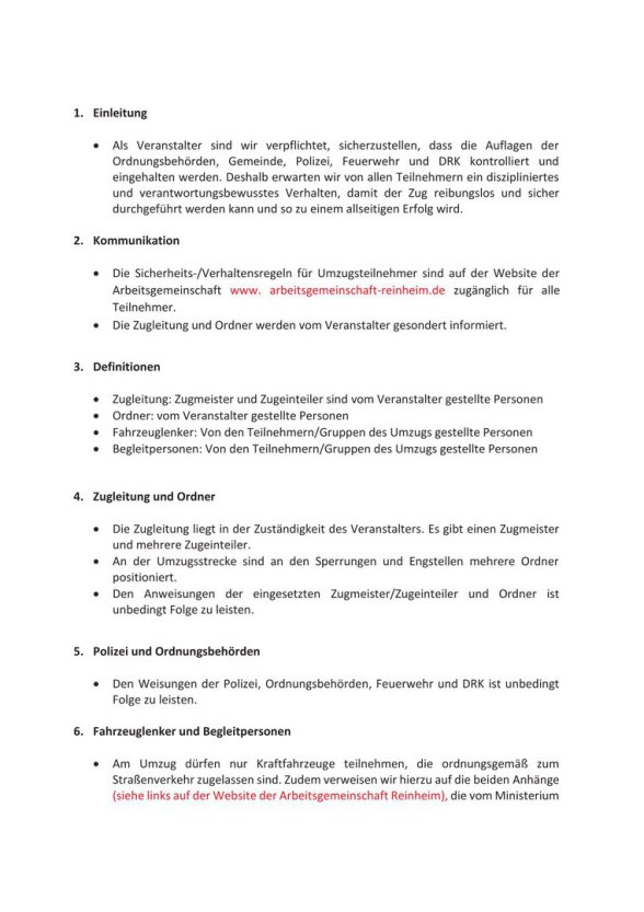 Sicherheits-/Verhaltensregeln für Umzugsteilnehmer