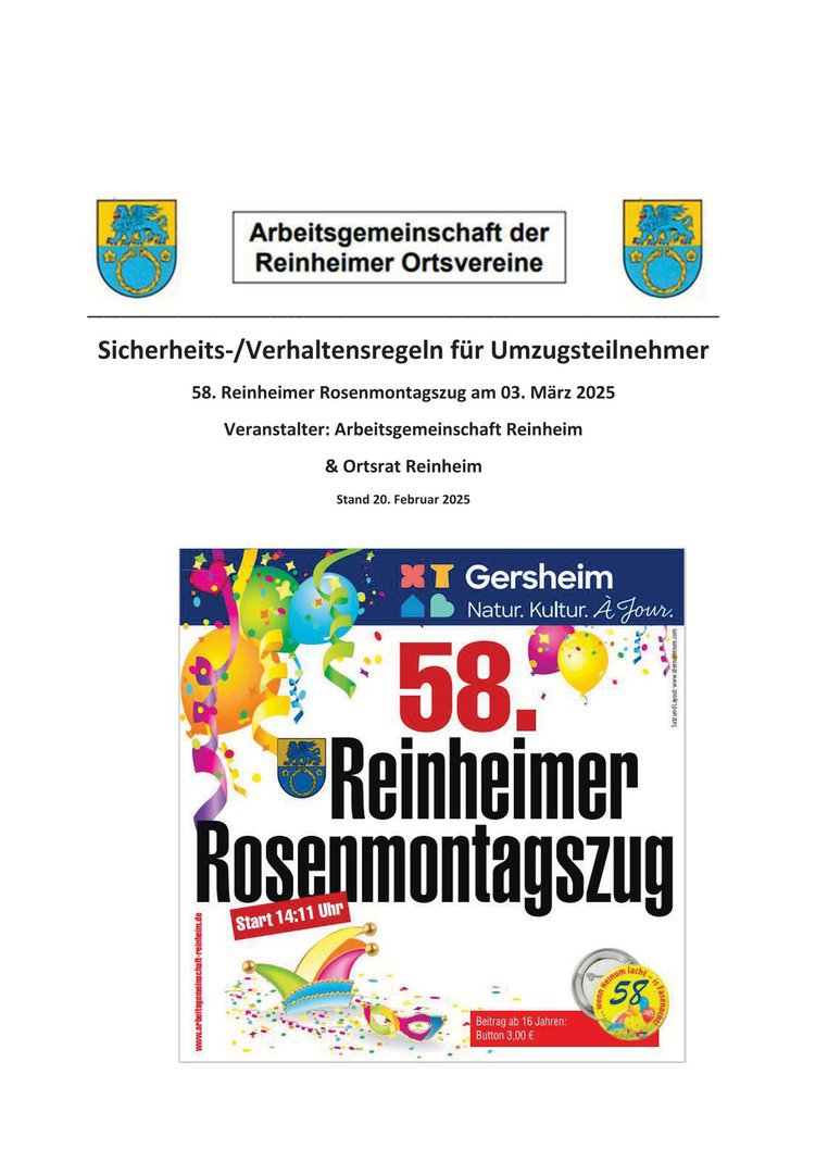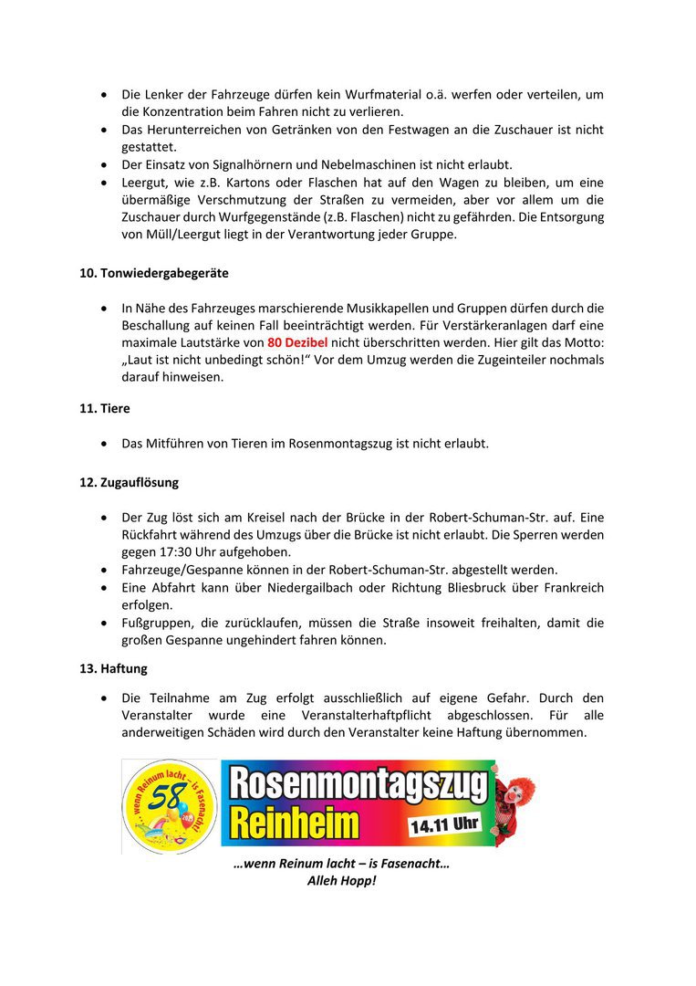 Sicherheits/Verhaltensregeln für Umzugsteilnehmer 58. Rosenmontagszug